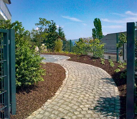 RÖSCH Gartengestaltung ist Ihr „Hof- und Weg-Lieferant“. Wir verlegen für Sie Naturstein-Beläge aller Art, Pflastersteine und Platten – von Sandstein über Porphyr und Basalt bis hin zum Granit. Wir verlegen für Sie auch Beläge aus Betonpflastern. Ebenso gestalten wir für Sie komplette Treppenanlagen aus Beton und Natursteinblockstufen.
